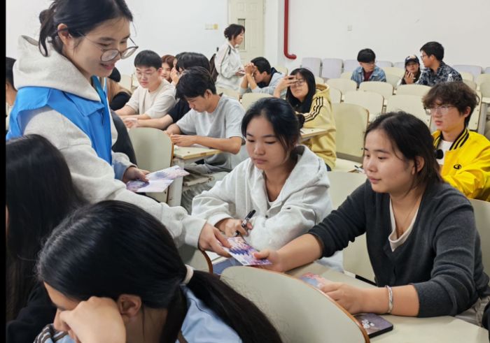 圖為志愿者代韋笑為同學們發(fā)放明信片。陳旭 供圖
