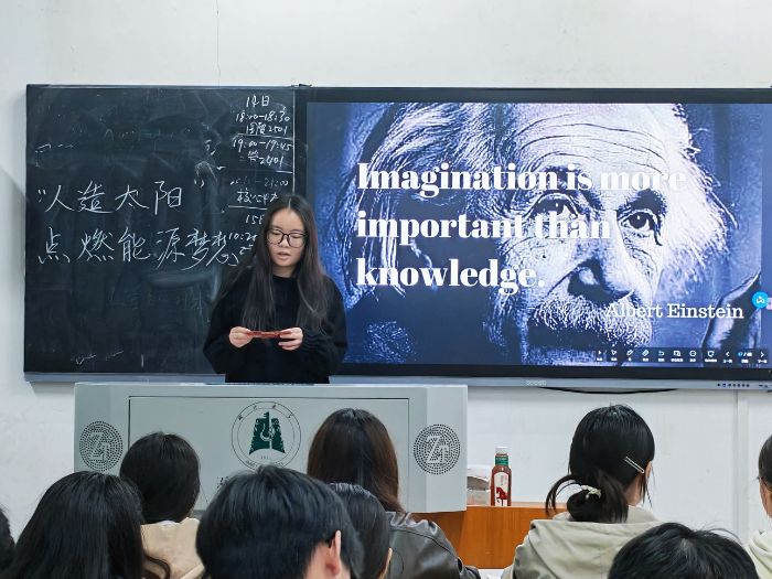 在互動體驗與思想碰撞后,主講人引用愛因斯坦的名言“想象力比知識更重要”引導同學們進入暢想環(huán)節(jié),大家在特制明信片上寫下對未來科技中國的憧憬:“希望人類早日實現(xiàn)感知式交互”“愿人類在火星擁有第一座核能基地”……隨后,多同學主動走上講臺分享自己的暢想,其中工管2401班的唐同學手持明信片激動地說:“讓核聚變能源走進千家萬戶,讓每個家庭都用上清潔電力!”真摯的發(fā)言引發(fā)全場共鳴。