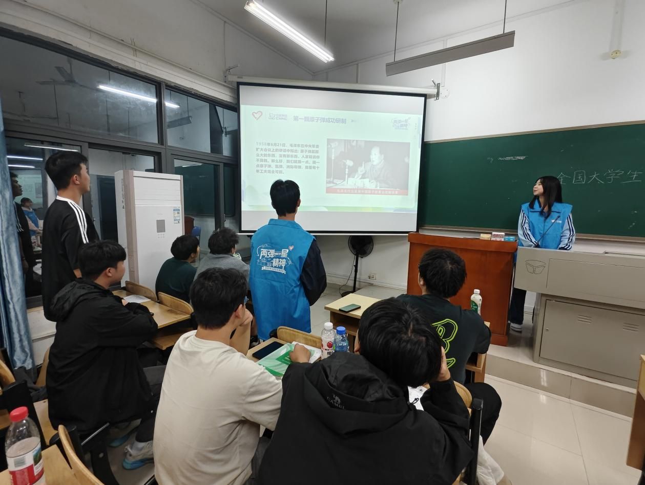 2025年11月4日,南寧學(xué)院不孤薪火志愿隊帶著對兩彈一星精神的深刻感悟,走進南寧學(xué)院人工智能學(xué)院基層班級,開展“弘揚兩彈一星精神”主題宣講活動。這場立足校園、貼近學(xué)生專業(yè)的宣講,通過故事分享、互動討論與價值共鳴,讓“熱愛祖國、無私奉獻,自力更生、艱苦奮斗”的精神內(nèi)核,在青年學(xué)子心中引發(fā)強烈回響。
