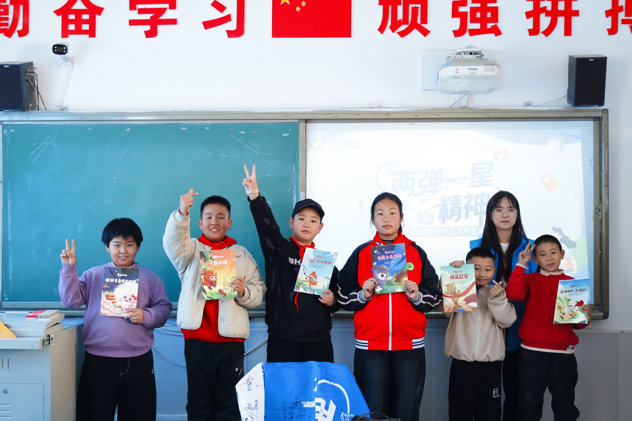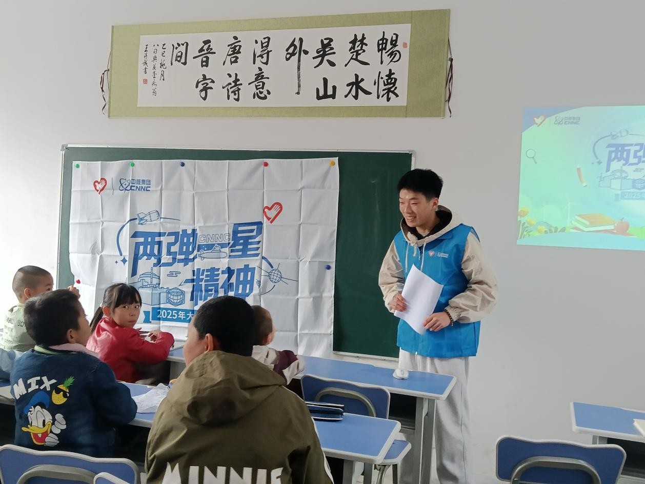 面向小學(xué)生群體,構(gòu)建“宣講+科普”啟蒙樂園。 在榆中縣高墩營小學(xué)、夏官營鎮(zhèn)小學(xué)的課堂上,抽象的“兩彈一星”精神化為了生動的故事與斑斕的色彩。宣講團精心設(shè)計《童心繪功勛,星火代代傳》、《星火相傳,核你一起》等課程,通過動畫短片、科學(xué)家故事、趣味問答和“我心目中的功勛科學(xué)家”海報創(chuàng)作等環(huán)節(jié),讓科學(xué)的種子在歡聲笑語中生根發(fā)芽。孩子們筆下蘑菇云下的歡呼、燈光下的算盤,正是“自力更生”、“大力協(xié)同”精神最純真而深刻的詮釋。