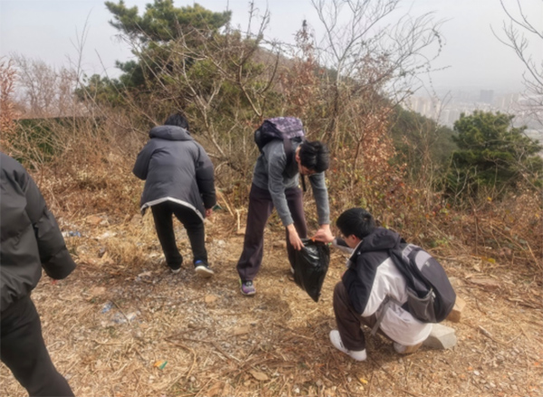 志愿者們仔細搜尋每一個角落,從草叢中撿出塑料瓶,從石縫中夾出煙頭,從水塘邊撈起包裝袋。盡管地形復雜、垃圾分散,但成員們熱情高漲,頂著冬日的寒風,以極大的耐心和細致投入到這場環保公益活動中。