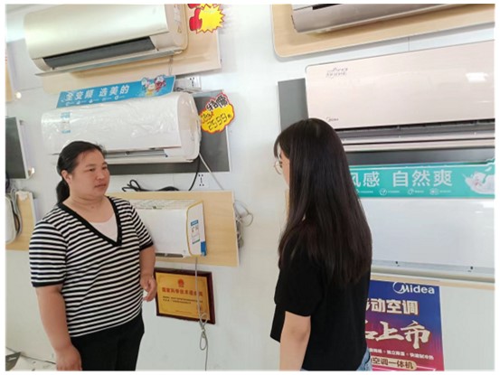 圖為志愿者向商家詢問了解疫情改善后,國家對于工商業(yè)這一行業(yè)給予的優(yōu)惠政策,讓工商業(yè)在疫情之后得以順利復工復產。中國青年網通訊員 范夢晗 供圖