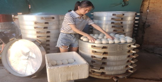 圖為饅頭在籠子上蒸的過程。這是最后一道工序,要把握好火候,在一定的時間里把這些饅頭蒸熟。中國青年網通訊員 谷亞楠 提供