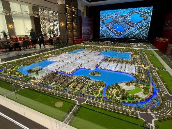 最后,實踐團(tuán)來到了寧陵當(dāng)?shù)匚穆萌诤系闹饕椖克诘?mdash;—葛天文化城,在規(guī)劃展館里可以看到未來規(guī)劃藍(lán)圖,主要包括了“四湖四園”,分別是葛天湖、信陵湖、張弓湖、呂坤湖,以及與其一一對應(yīng)的葛天園、信陵園、張弓園、呂坤園,以生態(tài)賦能讓生態(tài)資源和諧地融入城市肌理,將四湖相連,并在四個湖泊岸邊分別新建四園,在文化城東西南北四個方向新建四座城門,在中心區(qū)域建設(shè)商業(yè)中心、仿古街區(qū)、美食街坊等,以文促旅,助力鄉(xiāng)村振興。