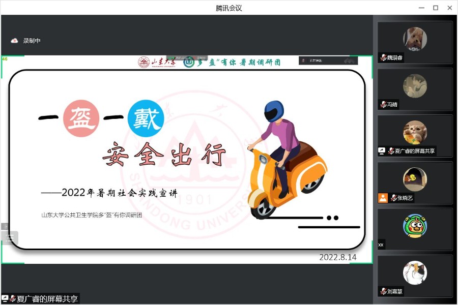在遵守疫情防控背景下,為普及頭盔安全知識,引導同學正確佩戴頭盔,分享高中學習經驗,展示大學多彩生活,山東大學公共衛生學院“多‘盔’有你”調研團于8月17日和18日分別開展了線下和線上“一盔一戴,安全出行”主題宣講活動。