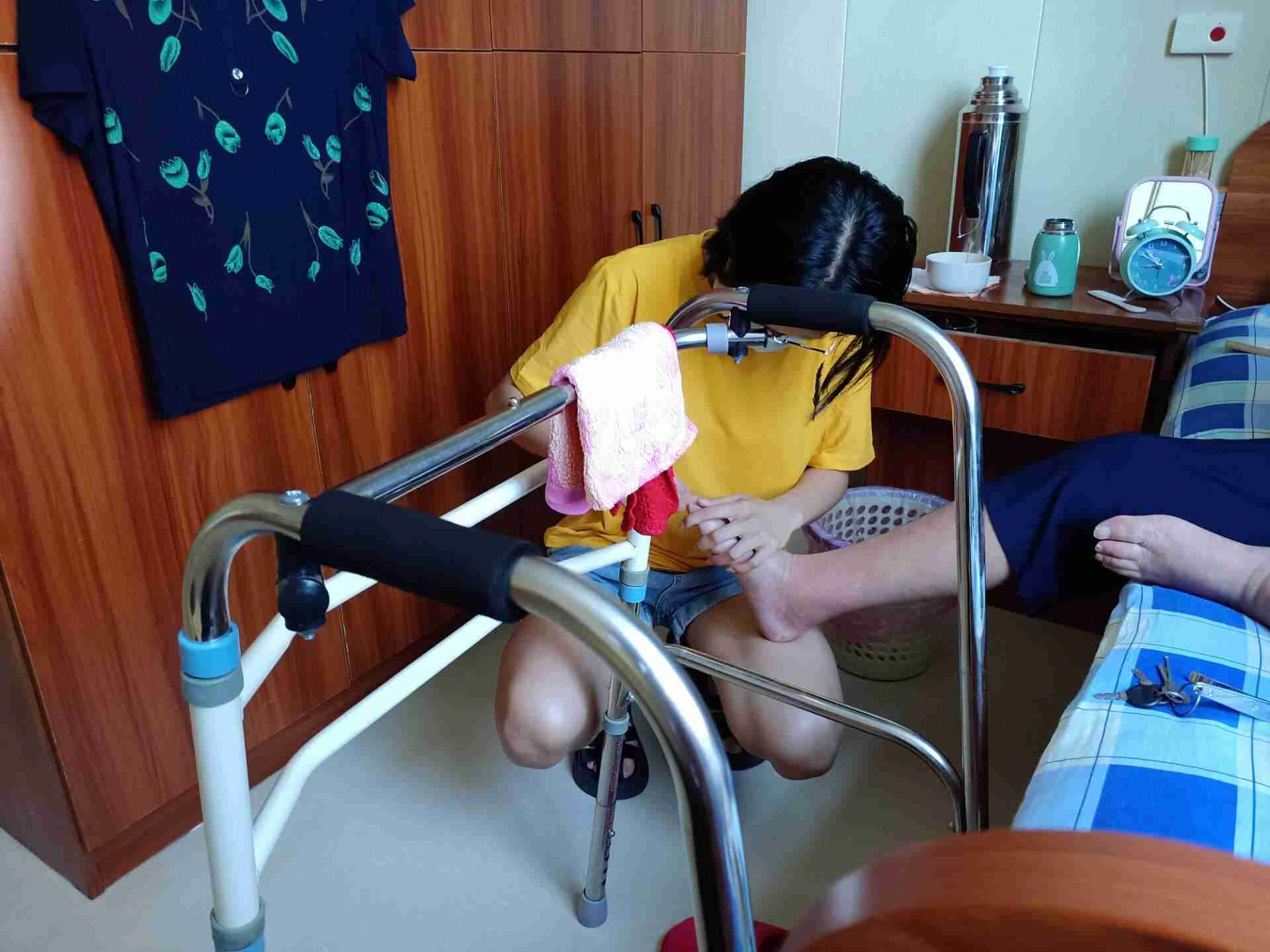 圖為隊員在為其中一位老人修剪腳趾甲 羅子晴 供圖