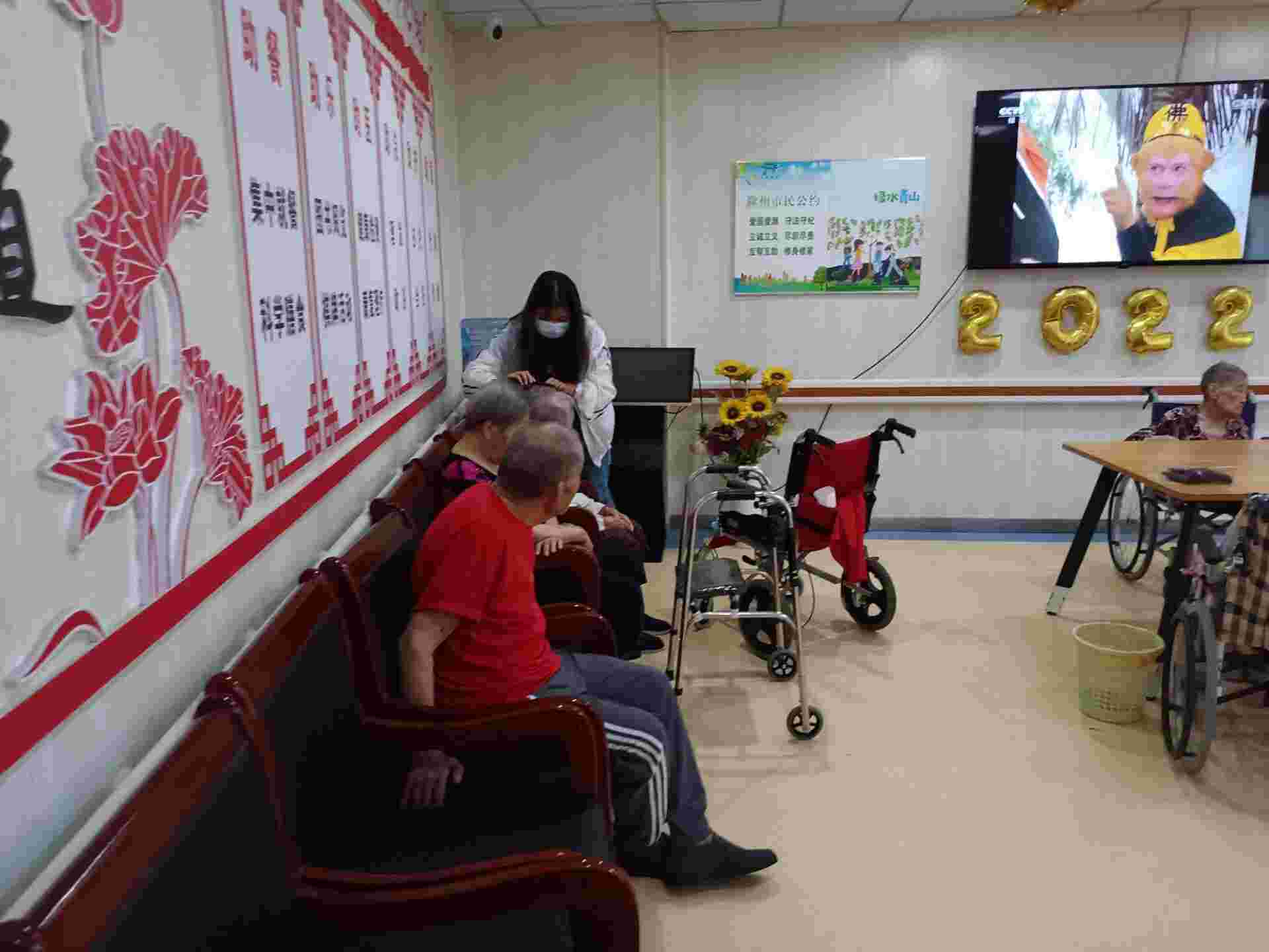 傾聽交談,送去溫暖與老人們交談是本次志愿活動最重要的,也是最必要的。通過傾聽,可以了解到老人的情況,無形中增強隊員們尊重老人的意識。通過交談,可以讓老人們感受到志愿者們的關懷,志愿者們可以給老人們宣傳綠色環保、疫情防控的知識。隊員們謹記在活動前了解到的注意事項,向老人說明身份與目的,在此過程中不主動問及老人的家里情況以及來養老院的原因,小心翼翼地觀察和照顧老人的情緒。剛開始都是圍繞很日常的話題交流,如“早上吃了什么”、“早上幾點起床”、“對這里的環境和人滿不滿意”等等。傾聽老人述說著他們的過往,感嘆時間的無情,隊員們總是一個勁兒地找話題,只希望用自己的努力不讓現場變得尷尬,盡力帶給老人溫暖。這一次活動讓隊員們了解到了他們年輕時候的生活,其中有一位老人非常愿意和隊員們分享她的過往,在與隊員們分享的時候,她的臉上洋溢著幸福的笑容,這種幸福感非常真實,隊員們都感嘆她擁有很幸福、快樂的生活。當然,并不是所有老人都那么健談,有的老人不愿意與其他人有太多的接觸,隊員們了解到有的老人害怕自己說錯話得罪人而只愿意待在自己的房間里,不愿意到大廳活動。隊員們了解到原因后,也沒有過多的勸解,只是靜靜地傾聽,安靜地陪伴。