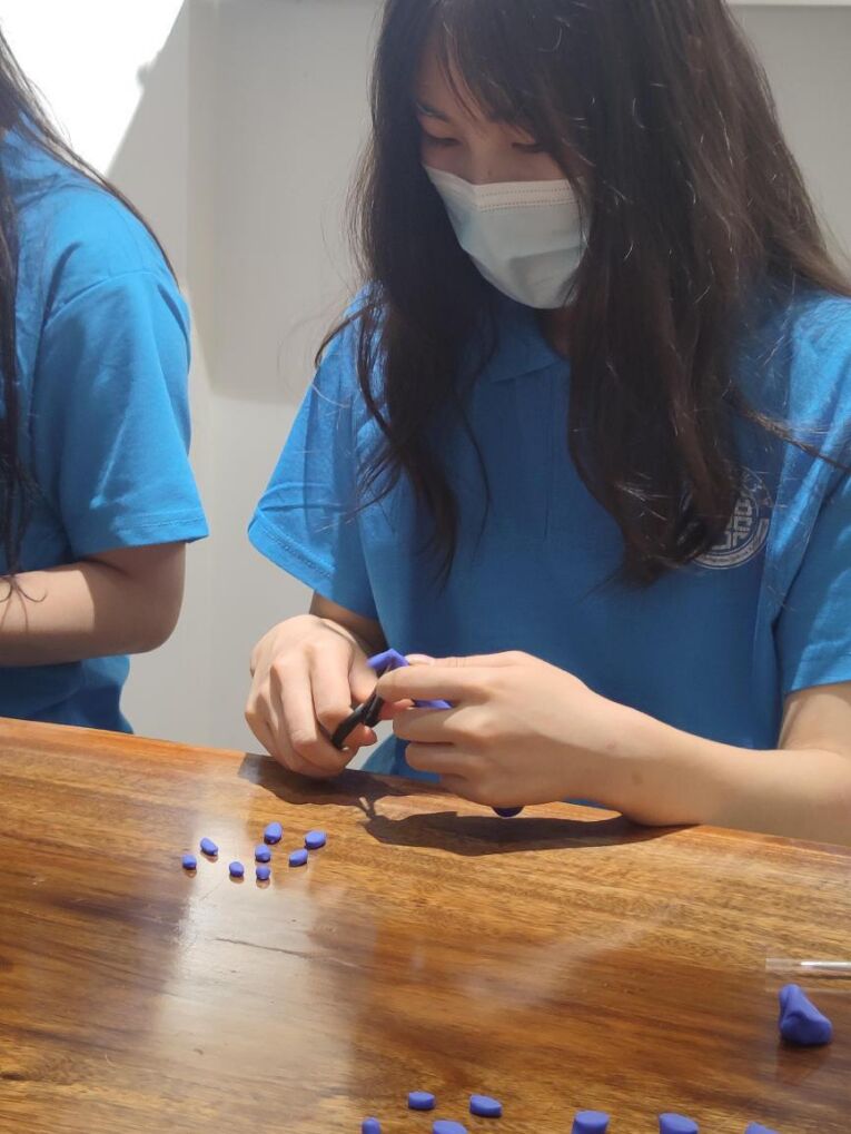 (實(shí)踐團(tuán)成員在王之勇老師的指導(dǎo)下制作面塑玫瑰 劉坤/攝)