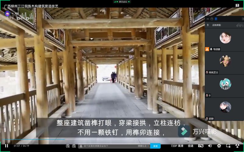 當日下午,實踐隊隊員又組織大家了解家鄉的傳統技藝。中國的智慧向來都是實踐的智慧,上午了解了儒家的“智”,下午便看看民間在實踐中的智慧。實踐隊員向大家介紹了廣西三江侗族自治縣的地方傳統建筑技藝——侗族木構建筑營造技藝。在侗族木構建筑中,建筑師不用繪制圖紙和制作模型,整體構思全在腦海中,僅憑手上把自制小角尺,用一條楠竹制的丈尺和一支竹片潔墨筆,通過手鋸、鑿子、斧頭、木創及長頭控鎬等工具,成百上千、長短不一、大小不等的梁、柱、枋、板、眼等,在“木馬”上制作而成。對于建筑中各種構件名稱,墨師們都爛熟于心。為使在豎樓時不至混亂,他們使用了代代祖傳的“墨師文”作為符號畫上標記。侗族工匠在木構建筑造型設計中遵循均衡、對稱、和諧的規律,并且注意運用直線、斜線、曲線、折線進行多重的組合構圖,構成了比例協調、均衡對稱、規整完美的建筑造型藝術,充溢著樸實自然、穩定規范的形式美感。建筑師們在腦海中構思,僅用簡單的工具即可建造出各種各樣的木構建筑,這是建筑師們的智慧所在,是他們在實踐中一點點累計的智慧。侗族木構建筑技藝不僅體現了侗族人民的民族信仰、精神追求和審美情趣,也體現出勞動人民在實踐中的智慧。入會人員表示這樣的建筑技藝確實充滿智慧,若有機會他們一定會去到三江侗族自治縣參觀一番。