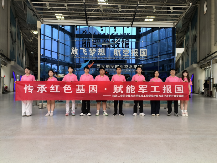 為深入學習貫徹習近平新時代中國特色社會主義思想,傳承紅色基因,厚植軍工報國情懷,2025年7月23日,陜西工業職業技術大學赴陜西富平“傳承紅色基因·賦能軍工報國”社會實踐團隊赴西安航空職業技術學院航空科技館進行參觀學習與實踐調研,近距離感受航空工業發展歷程,體悟軍工精神的時代內涵。