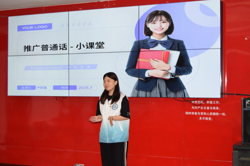 這場講座為實踐隊員提供了一次直觀的實踐認知機會,更讓他們在教育實踐中獲得了深刻啟發。孩子們為讀準 “藍蝴蝶” 三個字反復練習的專注,以及因答對方言與普通話區別而雀躍擊掌的反應,讓隊員們對普通話推廣工作有了新的認知:這項工作的核心不僅是字音的標準化傳遞,更在于用符合孩子認知特點的方式激發學習興趣,這正是教育中 “以學生為中心” 理念的生動體現。