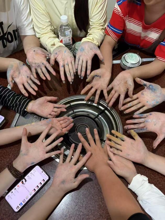 圖為小隊主要繪制人員進行人物調色。林蓉軒 供圖