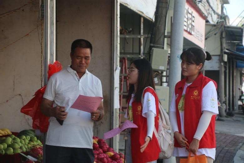 為更好地打通政策執行的“最后一公里”,把政策要求轉化為群眾共識和自覺行動,調研組和服務組成員深入群眾進行入戶政策宣講,向各商鋪派發《鰲頭鎮創建省級衛生鎮倡議書》,倡議各位商戶履行村鎮主人翁責任,以實際行動美化鄉鎮環境、共建美好家園。通過入戶與群眾面對面交流訪談,隊員們對鰲頭鎮落實“創文鞏衛”工作有了更多的感觸和見解,得到廣大群眾的支持。