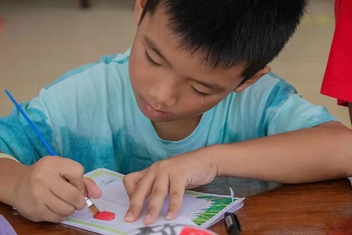 荔枝果殼平薄鮮紅,紋理雅致,剝開果殼,晶瑩碧透的果肉鮮嫩多汁,香氣清遠。課程接近尾聲,主講員采取積分獎勵的形式,鼓勵學生在本子上描繪荔枝的形狀,增強課堂的互動性,提高學生的課堂參與感。學生拿起手中的畫筆輕輕勾勒出略顯青澀的線條,再涂上鮮紅的顏色,一顆顆逼真的荔枝便躍然紙上。至此,本次“犀荔故事”——增城荔韻故事分享會結束,主講員“蓮霧姐姐”鼓勵同學們在課后更進一步了解增城荔枝,發掘荔枝中傳承千年的嶺南飲食文化,綻放“美荔時代”的獨特光彩。