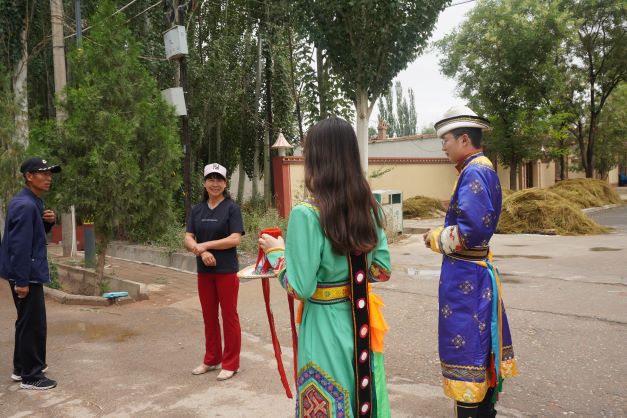 胡嬌飲馬八千里,胡雛馬驚沙塵起,從蘭州到酒泉,再抵達(dá)黃泥堡裕固族鄉(xiāng),將近10小時(shí)的火車,一個(gè)多小時(shí)的大巴,隊(duì)員們終于抵達(dá)了本次實(shí)踐活動(dòng)的目的地,并于7月16日正式開始了實(shí)踐活動(dòng)。