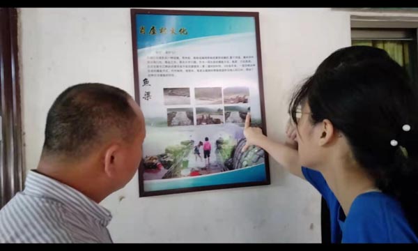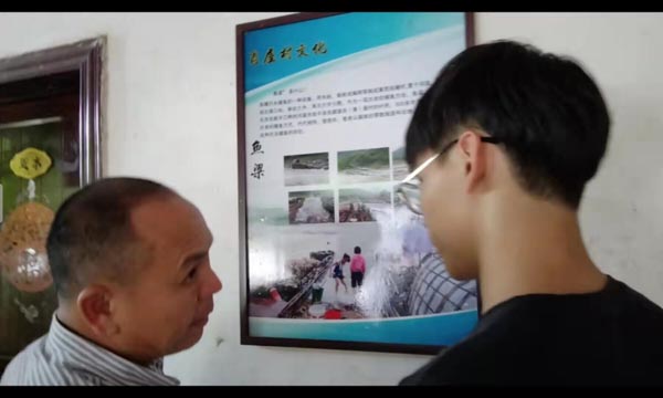 圖為團(tuán)隊(duì)成員在詢問肖屋漁梁第十九代傳人一些關(guān)于漁梁的問題。中國青年網(wǎng)通訊員 卓金城 攝