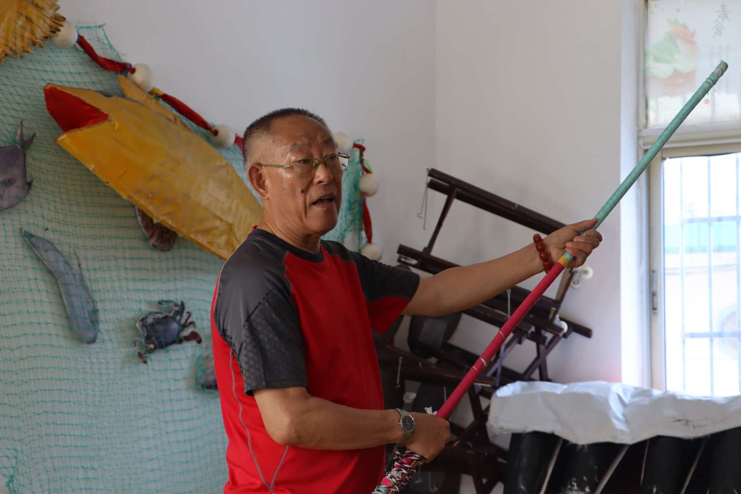 為了進一步發(fā)掘富有海島特色、漁村特色的民間文化、非遺文化,弘揚具有舟山特點的歷史文化,浙江海洋大學(xué)舟山海洋非遺形象化傳播實踐調(diào)研團團隊于6月26日來到了漁民號子傳承人洪國壯老師的工作室。