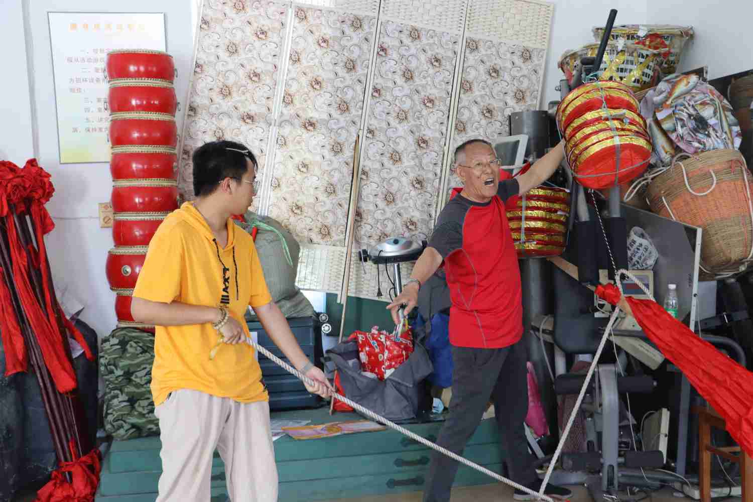 在聽完洪老師的詳細講述之后,我們跟隨老師來到了他的排練室。他親自為我們演示了一遍四種不同的號子,同時還詳細的講述了各種號子出現(xiàn)的情景以及人們的動作。最后,我們的韓松吟同學(xué)上臺對洪老師進行一段采訪。老師耐心的對我們的疑問做出了回復(fù)。其中讓我們印象最深的是,洪國壯老師秉著對漁歌號子的熱愛,以及傳承祖輩文化的強烈愿望,頂著巨大壓力,身體力行。每學(xué)期都會去定海區(qū)海山小學(xué)義務(wù)教學(xué)十二個禮拜以上。至今,他已堅持了10余年。
