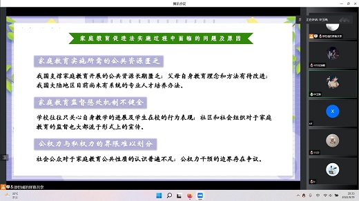 在本次宣講結束之際,團隊成員們打開攝像頭完成了大合照的拍攝。希望在《家庭教育促進法》和《預防未成年人犯罪法》落地實施的指導下,將家庭教育指導融入基層治理日常,進而延伸司法保護的觸角,將對未成年人的保護想在前,做在先。