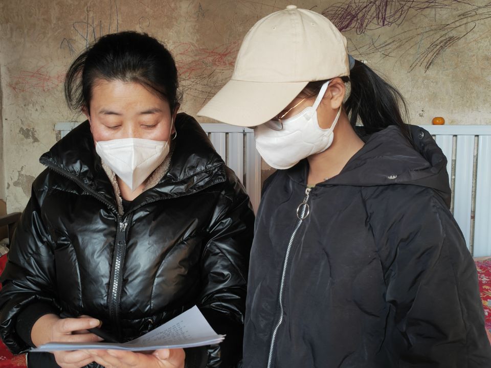 圖為隊員指導村民填寫調查問卷。多彩大學生網通訊員 許婧 攝