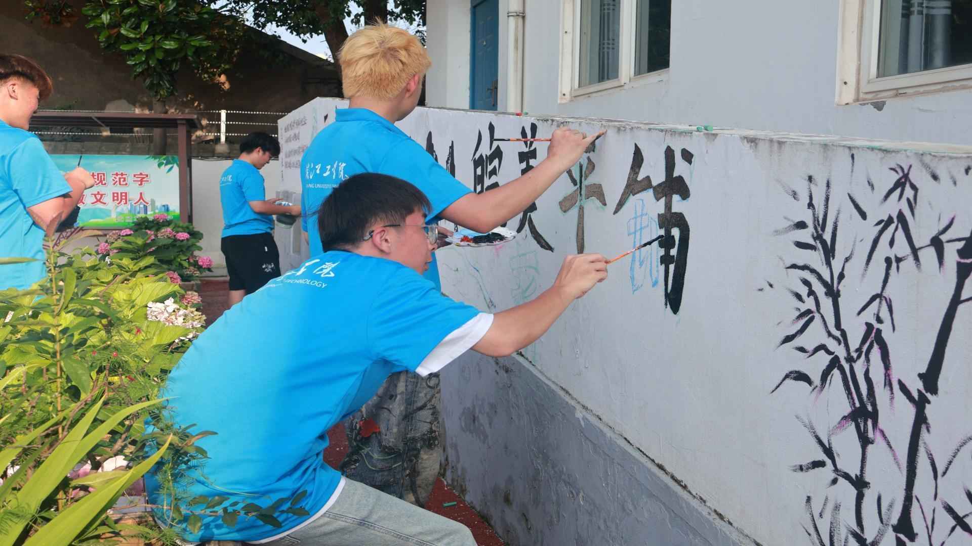 圖為實踐隊隊員在墻壁上繪畫 馬季供圖