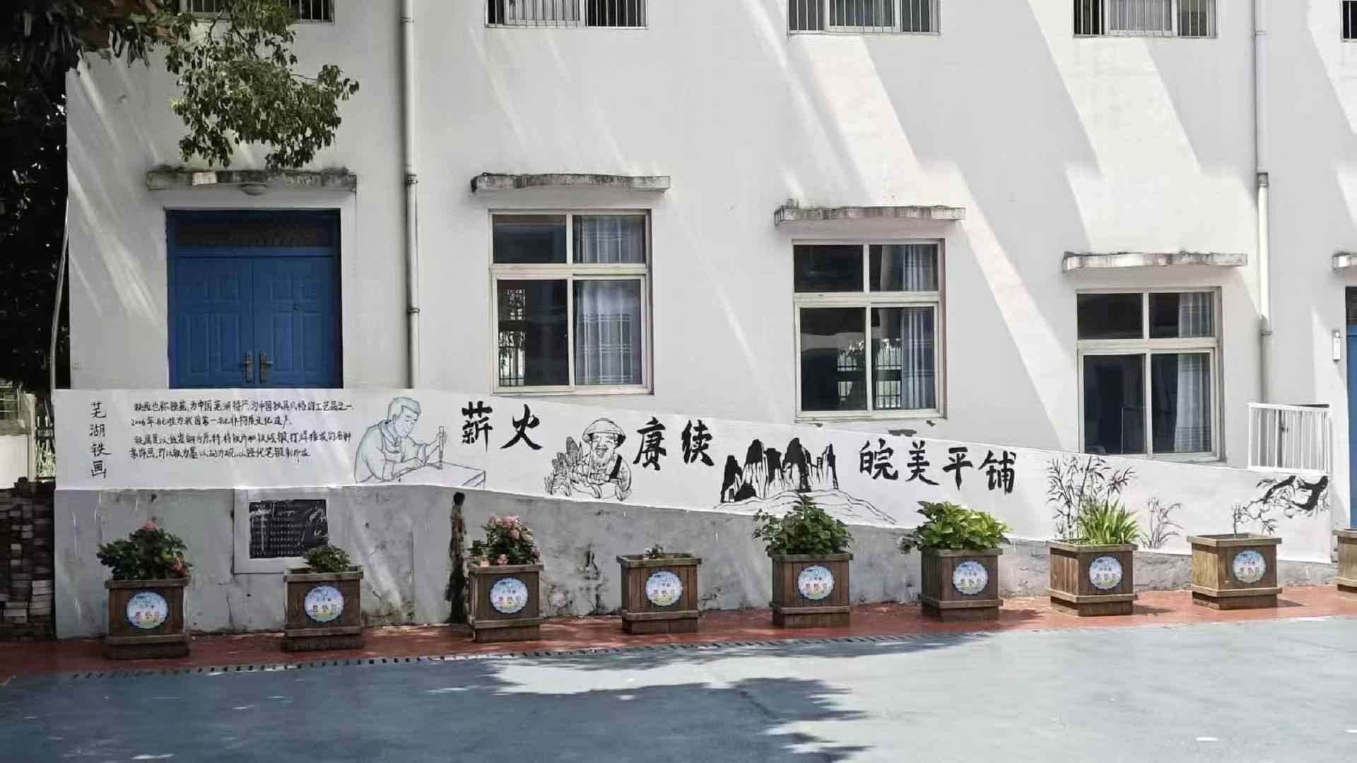 當一幅幅鐵畫墻繪在校園里綻放,不僅為校園增添了文化氣息,更成為非遺科普的“活課堂”。學生們圍在墻繪前,好奇地追問鐵畫的歷史與技藝,志愿者們則趁熱打鐵,講述鐵畫背后的故事。為讓更多人參與其中,團隊還邀請村民與青少年親手體驗繪畫,在一筆一畫間,加深對鐵畫的理解,也讓校園里的文化凝聚力愈發濃厚。