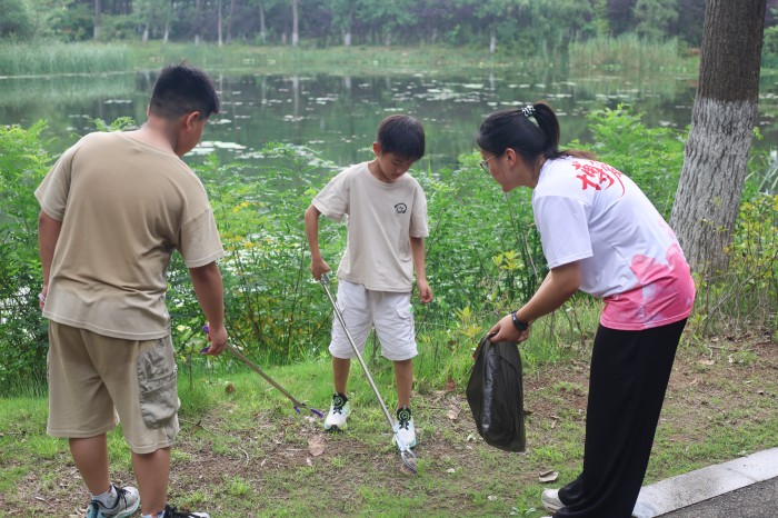 團隊成員在清江浦區古淮河生態公園、里運河文化長廊、缽池山公園、洪澤區洪澤湖及金湖縣柳樹灣濕地公園等地,集中開展“凈灘行動”。志愿者們手持垃圾袋、夾子等工具,分工協作,細致清理塑料袋、飲料瓶、枯枝落葉等各類垃圾,不怕臟、不怕累,用汗水換來岸線整潔。行動不僅有效改善了河岸環境,更通過青年志愿者的示范帶動,向游客和居民宣傳保護水域的重要性,倡導文明游覽,減少垃圾丟棄。
