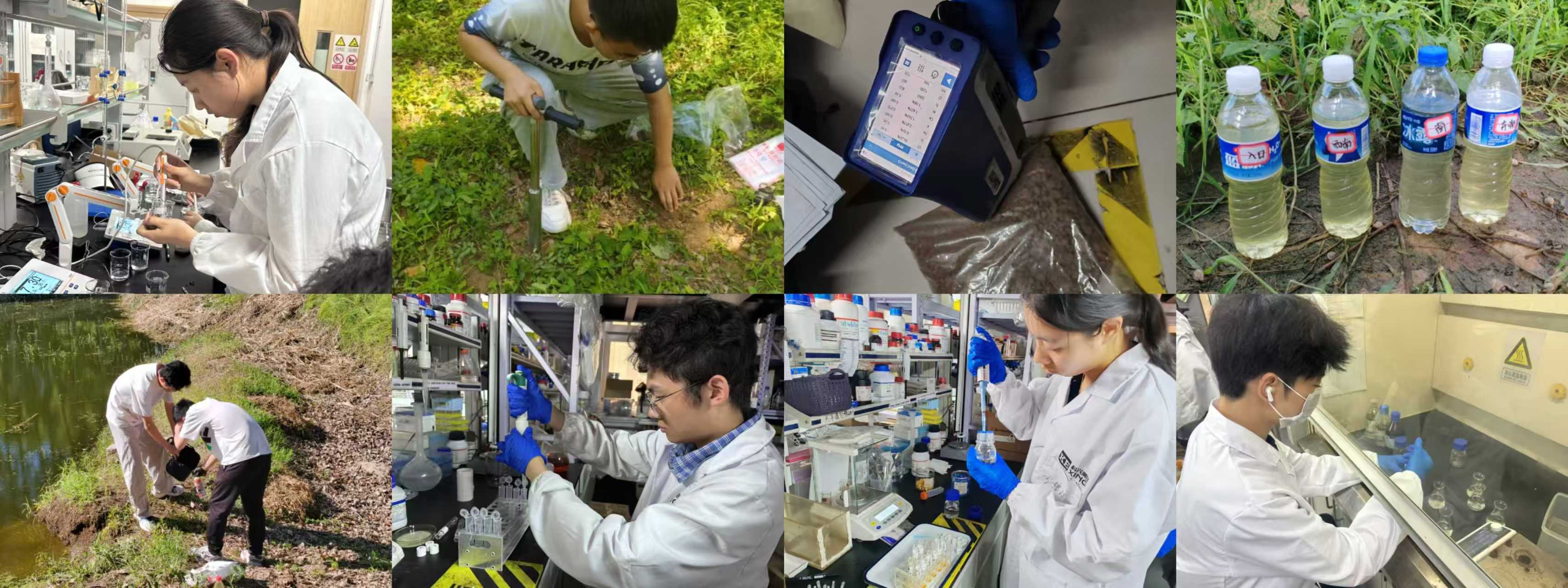 期間,成員們深入坑塘河道、林地土壤開展土壤與水質采樣,對污染區域多項指標進行系統監測,包括水質指標(COD、氨氮、總磷)、土壤指標(重金屬、電導率、揮發物)等,將校內課本知識運用到校外試驗田中,依托數據精準定位污染源頭,并結合文獻檢索、走訪調研、座談商討明確治理方向,最終形成切實可行的治理方案和林地種植作物建議。