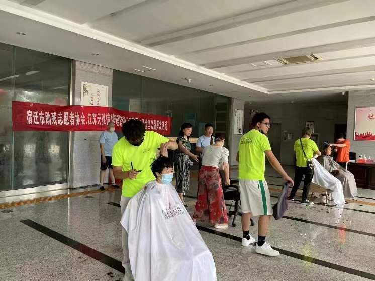 (圖為光盲之路志愿者在江蘇宿遷開展的公益剪發活動。 光盲之路社會實踐團隊 鄭茹丹 攝)