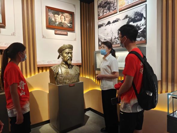 圖為解說員為同學(xué)們介紹定海保衛(wèi)戰(zhàn)始末 中國(guó)青年網(wǎng)通訊員 李瞳菲 攝