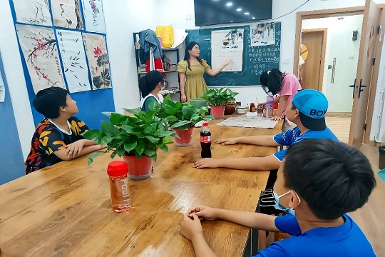 同樣,在山東省聊城市,也分布著遠近聞名的“農民國畫村”。該村落位于聊城臨清市松林鎮,據實踐基地負責人介紹:“這個小小的村莊,卻有著60名農民畫師,其中有7位畫師是省美協會員,另外還有100多名學美術的大學生。”實踐成員們便以當地的國畫文化為依托,走進村落為兒童們上了一堂別開生面的國畫課。活動中,團隊成員以名家作品為案例,向學生們普及了青綠、淺絳、水墨、工筆、寫意等國畫基礎知識,并讓學生們親手操作,一筆一劃勾勒自己心中的美妙圖景。課后,學生們紛紛表示在課堂中感受到了國粹的魅力,表達了愿繼續傳承家鄉國畫文化的心愿。