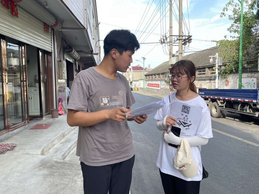 圖為實踐隊在走訪問卷。虞喜琴攝