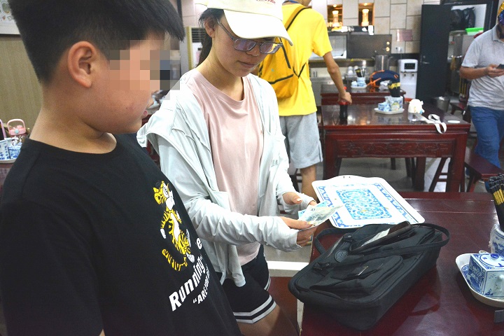 午餐環(huán)節(jié)同樣干貨十足。就餐過程中,志愿者指導孩子們自主點餐、付款和取餐,多數(shù)孩子能主動和服務員溝通,在實踐中活學活用數(shù)學知識。餐后安排孩子們購買奶茶,由于午餐的開銷,不少孩子的余額已經(jīng)不太充裕在志愿者的指導下,錢幣不足的孩子或是向同伴借錢,或是主動選擇價格更低的飲品,在實際操作中泛化金錢管理的能力。其中,冬冬在錢幣不夠并且借不到錢的情況下,克制住自己的欲望放棄了購買奶茶,整個過程情緒十分平穩(wěn);爻毯,老師用列表格的方式引導孩子們清點午餐的消費項目以及總開銷。孩子們在上黑板填表的過程中不自覺地反思了自己的消費行為,同時又一次練習了口算技巧。