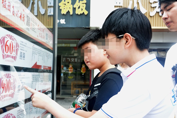 圖為志愿者陪孩子們一起確認乘坐公交線路。多彩大學生網(wǎng) 通訊員 王文欣 攝