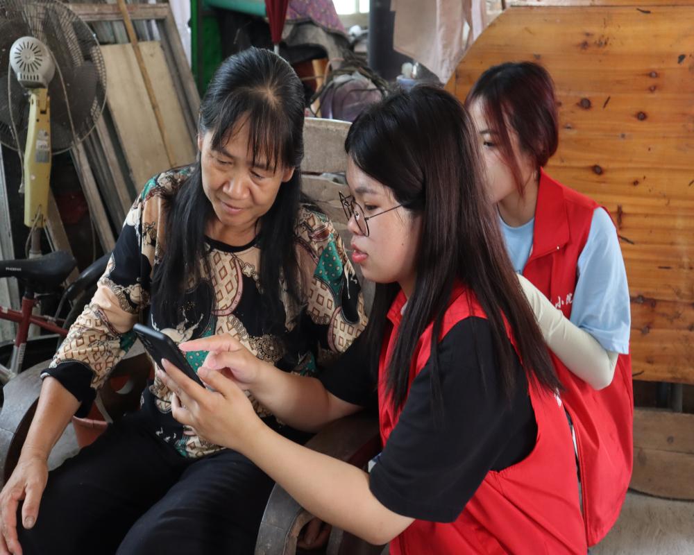實(shí)踐隊(duì)隊(duì)員在下河村入戶訪談,與當(dāng)?shù)卮迕襁M(jìn)行親切對(duì)話,了解下河楊桃產(chǎn)業(yè)發(fā)展現(xiàn)狀和果農(nóng)面臨的實(shí)際問題和困境。隨后,實(shí)踐隊(duì)隊(duì)員為走訪的果農(nóng)送去規(guī)范的果蠅誘捕器并示范使用操作方法,耐心為果農(nóng)解惑答疑。同時(shí),實(shí)踐隊(duì)員成為科普信息員,為農(nóng)戶介紹“科普中國”APP,手把手教授用手機(jī)端瀏覽科普中國,從而使農(nóng)戶從中獲取有益于農(nóng)業(yè)發(fā)展的各類信息,真正成為緊隨時(shí)代發(fā)展的“新農(nóng)人”、鄉(xiāng)村振興的主力軍。