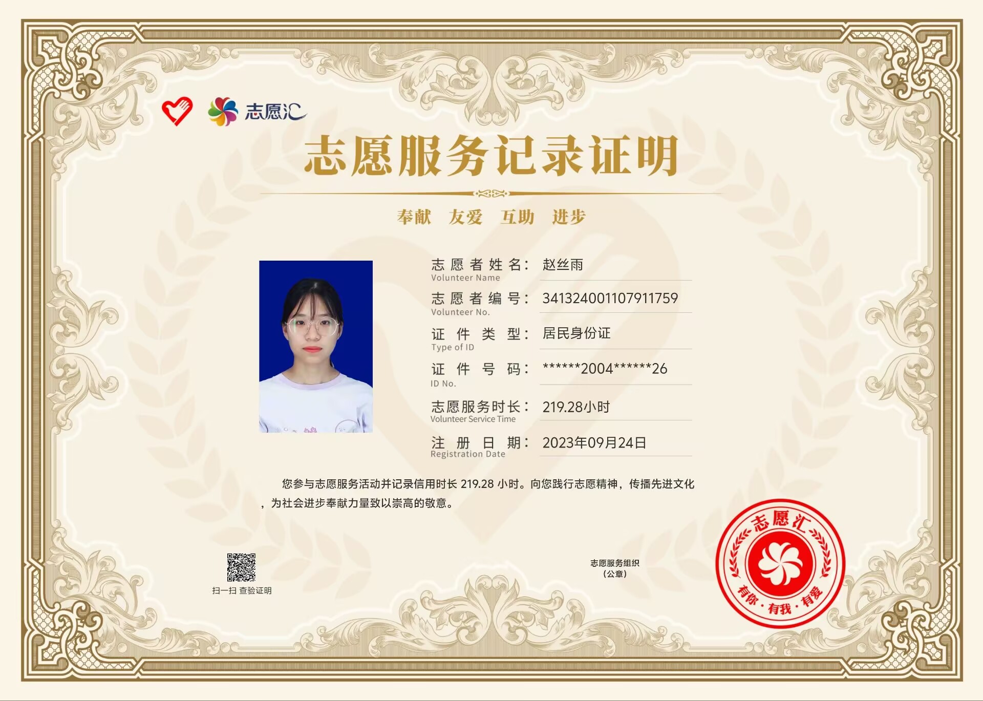本草送康,躬身社區(qū)——趙絲雨志愿服務(wù)維護(hù)社會(huì)利益事跡 趙絲雨,安徽中醫(yī)藥大學(xué)第一臨床醫(yī)學(xué)院中醫(yī)學(xué)2023級(jí)本科生,漢族,團(tuán)員。積極參加中醫(yī)藥文化進(jìn)校園等活動(dòng),致力于中醫(yī)藥文化宣傳。積極投身志愿服務(wù),多次參加義診,并于2025年暑假參加三下鄉(xiāng)活動(dòng),擔(dān)任“本草傳馨,導(dǎo)引送康”服務(wù)隊(duì)的隊(duì)長(zhǎng)。志愿時(shí)長(zhǎng)累計(jì)超過(guò)219小時(shí);現(xiàn)任安徽中醫(yī)藥大學(xué)中藥資源中心講解團(tuán)講解員;現(xiàn)擔(dān)任大學(xué)生傳統(tǒng)養(yǎng)生保健協(xié)會(huì)部長(zhǎng)。在2023至2024學(xué)年獲得校二等獎(jiǎng)學(xué)金。 在服務(wù)社會(huì)、守護(hù)民眾健康方面,趙絲雨同學(xué)展現(xiàn)了突出的行動(dòng)力、領(lǐng)導(dǎo)力與奉獻(xiàn)精神。作為“本草傳馨,導(dǎo)引送康”三下鄉(xiāng)服務(wù)隊(duì)隊(duì)長(zhǎng),她深刻認(rèn)識(shí)到中醫(yī)藥學(xué)子服務(wù)基層、回饋社會(huì)的責(zé)任。她以身作則,帶領(lǐng)團(tuán)隊(duì)深入社區(qū),將課堂所學(xué)轉(zhuǎn)化為服務(wù)民眾的實(shí)際行動(dòng)。在社區(qū)服務(wù)點(diǎn),趙絲雨同學(xué)發(fā)揮專(zhuān)業(yè)所長(zhǎng),熱情細(xì)致地為居民提供推拿服務(wù),緩解他們的筋骨疲勞;耐心講解常用中藥的功效與應(yīng)用,普及中醫(yī)藥養(yǎng)生保健知識(shí);運(yùn)用所學(xué)技能,認(rèn)真為居民測(cè)量血壓、血糖,進(jìn)行基礎(chǔ)健康監(jiān)測(cè),并給予相應(yīng)的健康生活建議。她的行動(dòng)并非一時(shí)興起,而是長(zhǎng)期堅(jiān)持參與、在多個(gè)項(xiàng)目中活躍,將服務(wù)社區(qū)、守護(hù)健康內(nèi)化為自覺(jué)行動(dòng)。