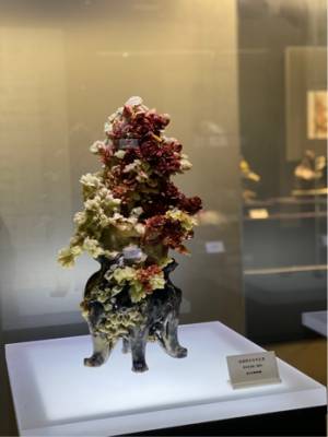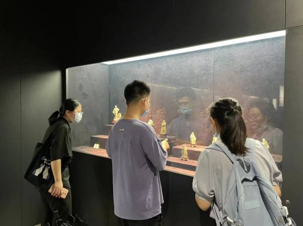 匠心筑夢,匠藝強國。第二站為青田石雕站。“太精致、太優雅了!我深受震撼的同時,也深深地了解到我們要堅定文化自信,大力發揚中華民族文化。”團隊成員驚嘆著大師們精湛的技藝、器物造型的精致,沉浸在濃厚的藝術氛圍當中。為了進一步了解石雕,團隊成員還請教了館中的志愿者。他講解道,青田石雕絕非一朝而成,是在工匠們一次又一次精雕中而誕生,而且每一處創新更是煞費苦心。在交談中,每位成員時不時點頭回應志愿者的講話,十分認同工匠精神——積極奮進,永不言棄!