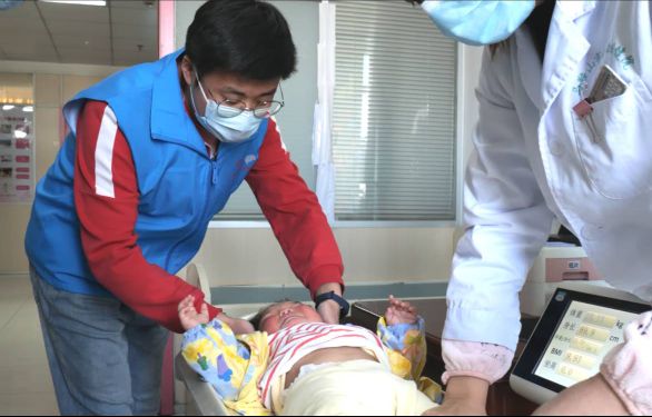 圖為服務隊隊員們輔助幼兒體檢