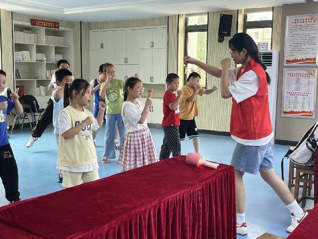 圖為志愿者教孩子們拳法的畫面。中國青年網通訊員 李瑛 供圖