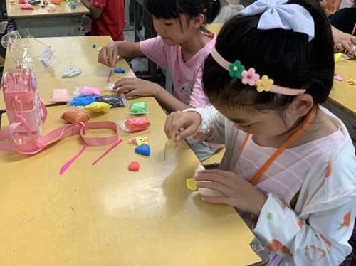 圖為學生認真制作粘土小玩具,提高學生的動手能力。