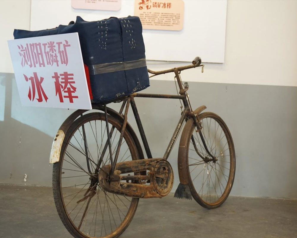 瀏磷歷史陳列館里六十年代瀏陽磷礦冰棒叫賣單車