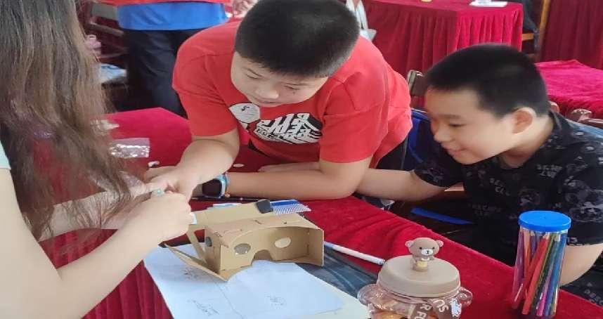 圖為實踐隊員帶領(lǐng)小朋友們制作VR眼鏡。通訊員 余曉冉 供圖