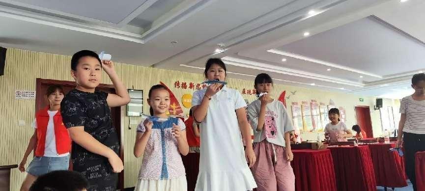 圖為實踐隊員與小朋友們進(jìn)行燕子紙飛機活動。通訊員 陶京雪 供圖