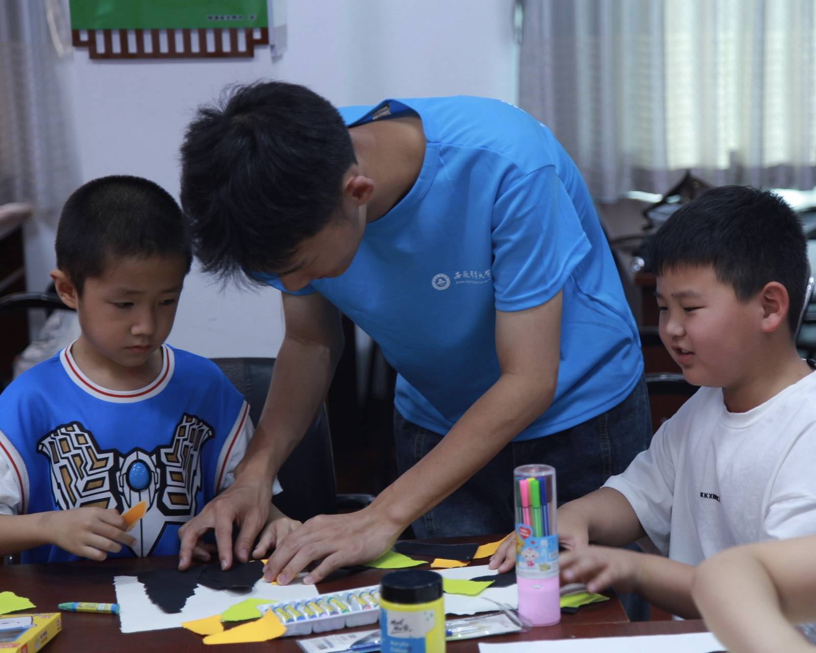 下午,為了培養孩子們的繪畫能力,讓孩子們認識美、感受美、創造美,支教組再次前往中港社區開展美育活動。本次活動為繪畫課,分為色彩和造型兩個部分,支教組的主講老師首先以PPT形式進行簡單講解。在掌握一些基礎知識后,支教組的小老師們開始分發材料,在鼓勵小朋友們動手實踐的同時在旁輔助。活動中孩子們的積極性很高,紛紛踴躍發言,也都樂在其中,展現出了精彩的畫面。活動的尾聲,孩子們都得到了小禮物作為獎勵,并且與小老師們留影紀念。
