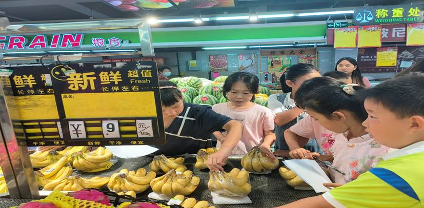 調研內容涵蓋了三個平時生活中的實際問題,即20元可以買多少斤豬肉;一家四口要吃一頓韭菜豬肉餃子的最低消費是多少;以及今天所有參加活動的同學每人購買一根香蕉需要多少元。這些看似簡單的問題實則考驗著孩子們的計算能力和溝通能力,同時激發了他們對生活的思考。