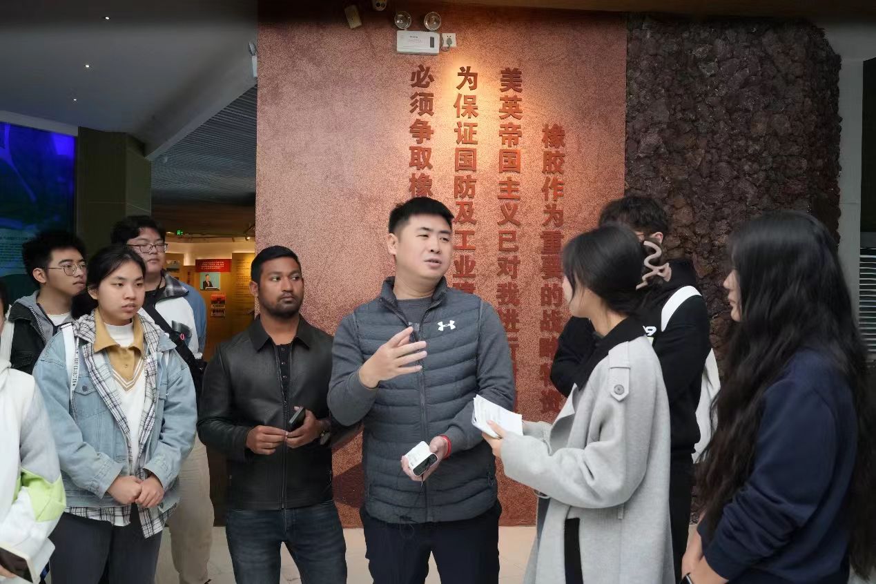 “在這里,我看到了中國(guó)人在社會(huì)發(fā)展困難時(shí)期艱苦奮斗的精神風(fēng)貌,真值得我們學(xué)習(xí),希望以后的生活都越來越好。”來自孟加拉國(guó)的留學(xué)生Mir Imamuzzaman Hasib (扎曼)凝視著展柜中斑駁的割膠工具,用流利的中文向身旁的中國(guó)同學(xué)分享感悟。