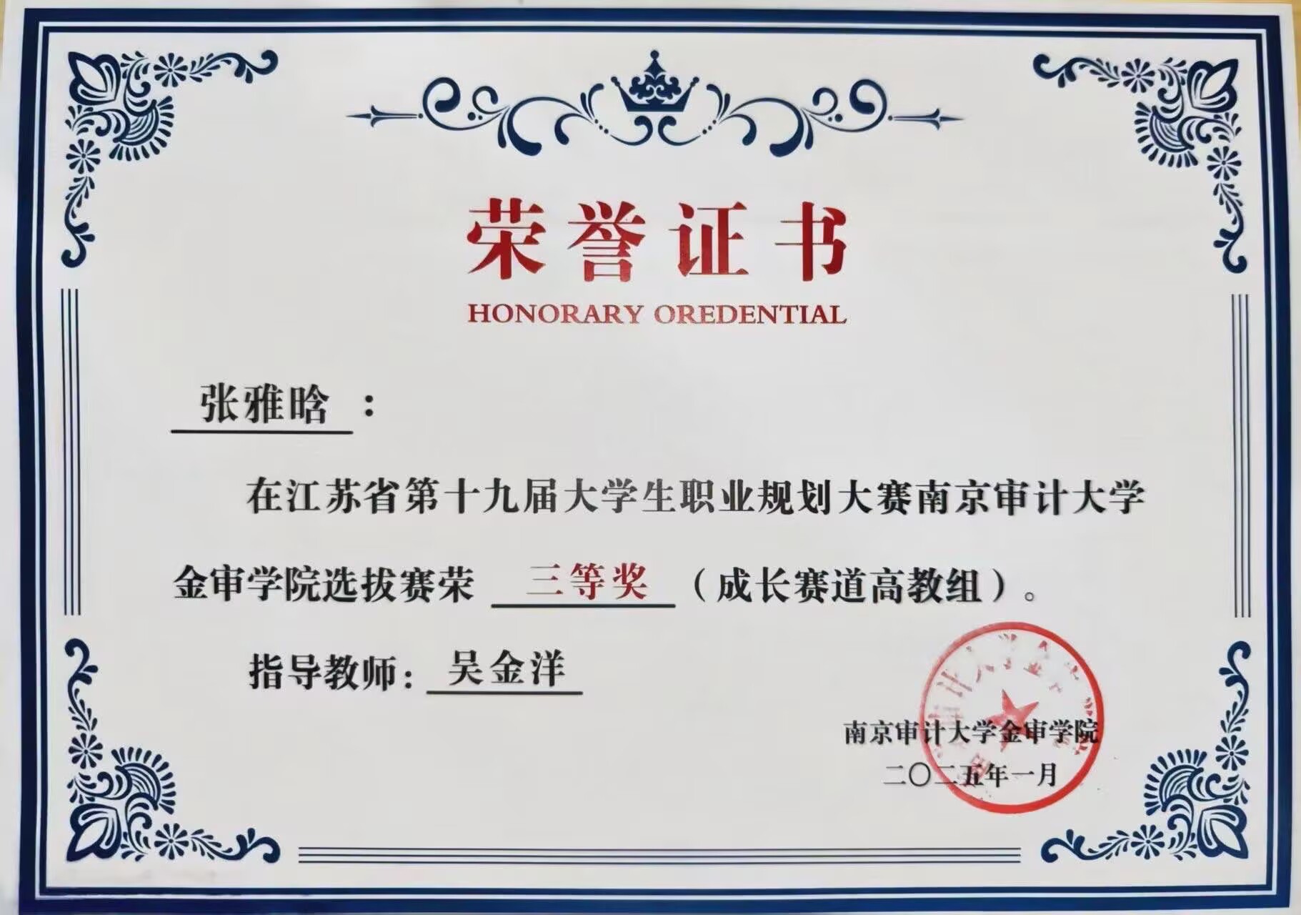 近日,南京審計(jì)大學(xué)金審學(xué)院金融與經(jīng)濟(jì)學(xué)院成功舉辦了職業(yè)規(guī)劃大賽校內(nèi)選拔賽,經(jīng)過激烈角逐,一批優(yōu)秀學(xué)生脫穎而出,展現(xiàn)了學(xué)院學(xué)子卓越的職業(yè)規(guī)劃能力和綜合素質(zhì),為學(xué)校和學(xué)院贏得了榮譽(yù)。期中24級(jí)金融實(shí)驗(yàn)班張雅晗獲得成長賽道三等獎(jiǎng),24級(jí)金融2班劉伊涵、24級(jí)金融3班左繹彬獲得成長賽道優(yōu)秀獎(jiǎng)。