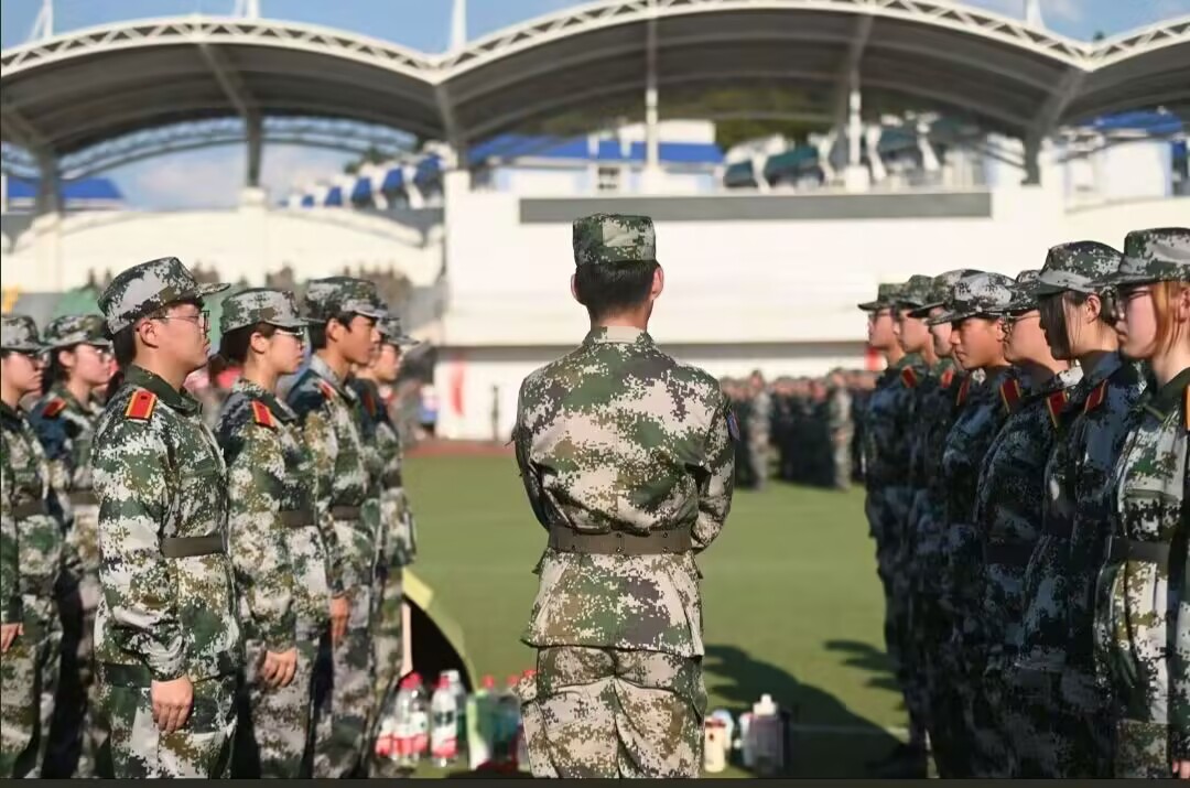 新生們對(duì)照基準(zhǔn)線調(diào)整站姿,從腳尖對(duì)齊到肩線平直,反復(fù)校準(zhǔn)細(xì)節(jié)。經(jīng)過(guò)多輪練習(xí),隊(duì)列逐漸形成整齊的直線,展現(xiàn)出十足的紀(jì)律性。陽(yáng)光漸烈,不少人額頭沁出汗水,卻始終保持身體穩(wěn)定,生怕打亂整體隊(duì)列。