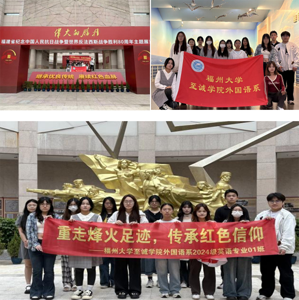 2025年,中國人民抗日戰爭勝利80周年的特殊節點如期而至,這段歷史鐫刻著民族的苦難與榮光,飽含著深沉的家國情懷。八十年前,萬千英烈挺身而出、舍生取義,用熱血鑄就民族獨立的豐碑,點亮和平的曙光;八十年后,接續紅色薪火、傳承精神力量,成為當代青年不可推卸的時代使命。為引導青年學子回望烽火歷程、厚植愛國情懷,福州大學至誠學院2024級外國語系英語1班團支部精心籌備了系列紅色團支部立項活動;顒有问截S富多樣,既有抗戰遺址的實地探訪,也有紅色故事的專題宣講,更有沉浸式的歷史感悟與互動式的思想碰撞。每一項安排都力求讓青年學子掙脫書本的束縛,在與歷史的近距離對話中感受先烈的赤誠信仰,在與同窗的深度共鳴中凝聚奮進的動能,讓紅色基因真正浸潤青春、融入血脈,在代代相傳中彰顯新時代的鮮活生命力。