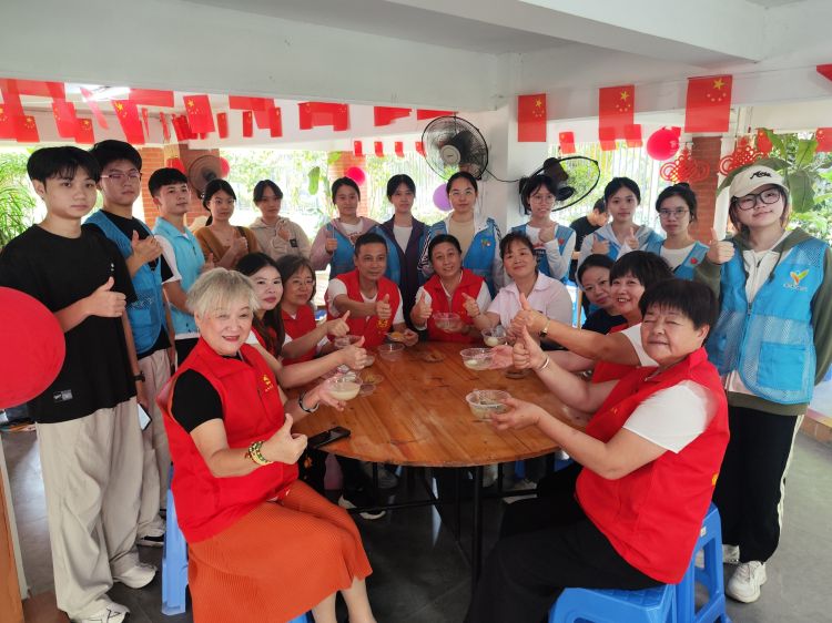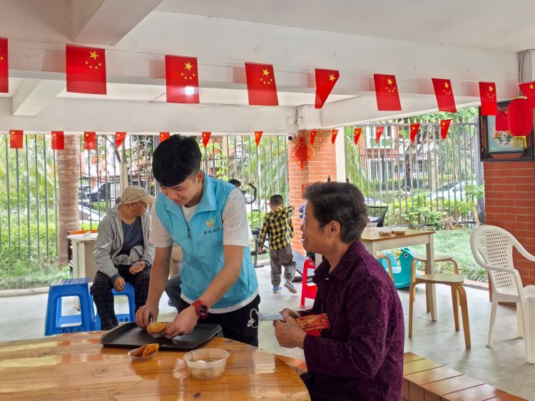 活動(dòng)現(xiàn)場(chǎng)暖意融融,支部成員分工明確、協(xié)作有序。在禮品派送區(qū),成員們將精心準(zhǔn)備的節(jié)日禮品逐一送到老人手中,一句句親切問候、一聲聲真誠祝福,讓老人們感受到濃濃的節(jié)日關(guān)懷;在傳統(tǒng)美食暢享區(qū),成員們有序引導(dǎo)來賓領(lǐng)取兌換券,實(shí)時(shí)關(guān)注美食余量并協(xié)助社工及時(shí)補(bǔ)供,確保美食體驗(yàn)過程高效順暢;在就餐聊天區(qū),成員們及時(shí)清理餐桌垃圾,維持現(xiàn)場(chǎng)整潔環(huán)境,并在過程中化身“攝影助手”,耐心指導(dǎo)老人調(diào)整姿勢(shì)、整理儀表以及介紹照片美化、云端分享的簡(jiǎn)單方法,將笑容與陪伴定格成一張張暖心合影。